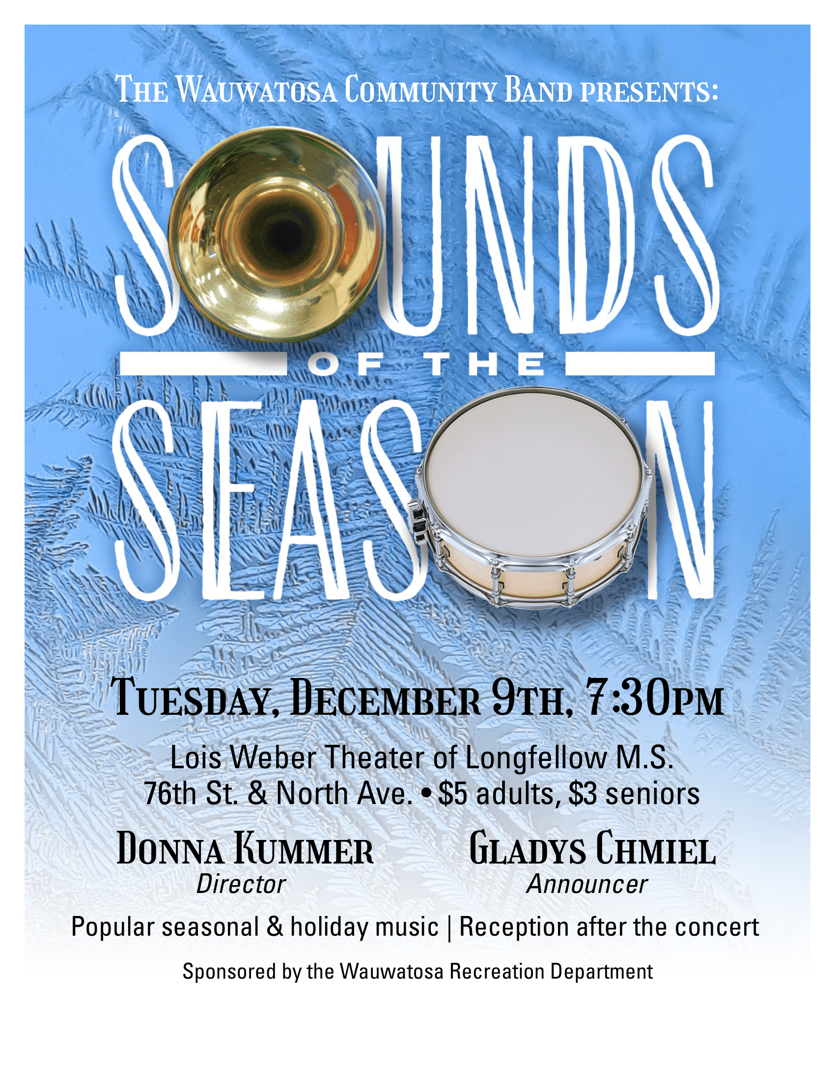 Snow is on the ground, the turkey leftovers are finally finished, and you’ve already heard “Last Christmas” a dozen times. It must be time for a Tosa Band Holiday concert! This Tuesday, come celebrate the season with us as we treat you to a diverse selection of tunes including an Irving Berlin medley, a Nativity Painting, and a Dreidel Dance. As always, we invite you to stay for some festive treats afterward!
